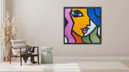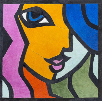 Behold 'A Woman's Essence,' a vivid expression of handcrafted leather art. This handmade leather wall hanging is a mosaic of bold colors that shape a woman's profile, capturing her enigmatic allure. It's a striking handicraft leather wall decor that speaks to the soul, making it a captivating leather wall piece for any space.