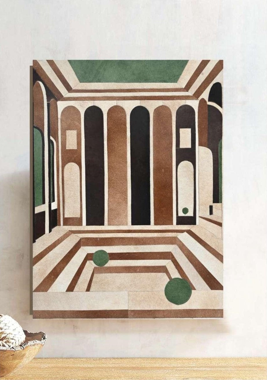 Experience the enchantment of "The Courtyard," a testament to the beauty of nature and craftsmanship. As you gaze upon this handmade leather wall piece, you'll be transported to a world of peace and serenity, where time seems to stand still amidst the lush foliage and gentle breezes.